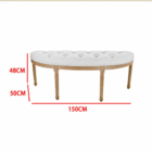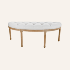 Banqueta decorativa semicircular con base de madera tallada y acabado envejecido. Asiento capitoné en tela blanca acolchada que aporta elegancia y comodidad. Ideal para recibidores, dormitorios o espacios de estilo clásico.