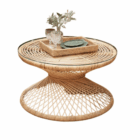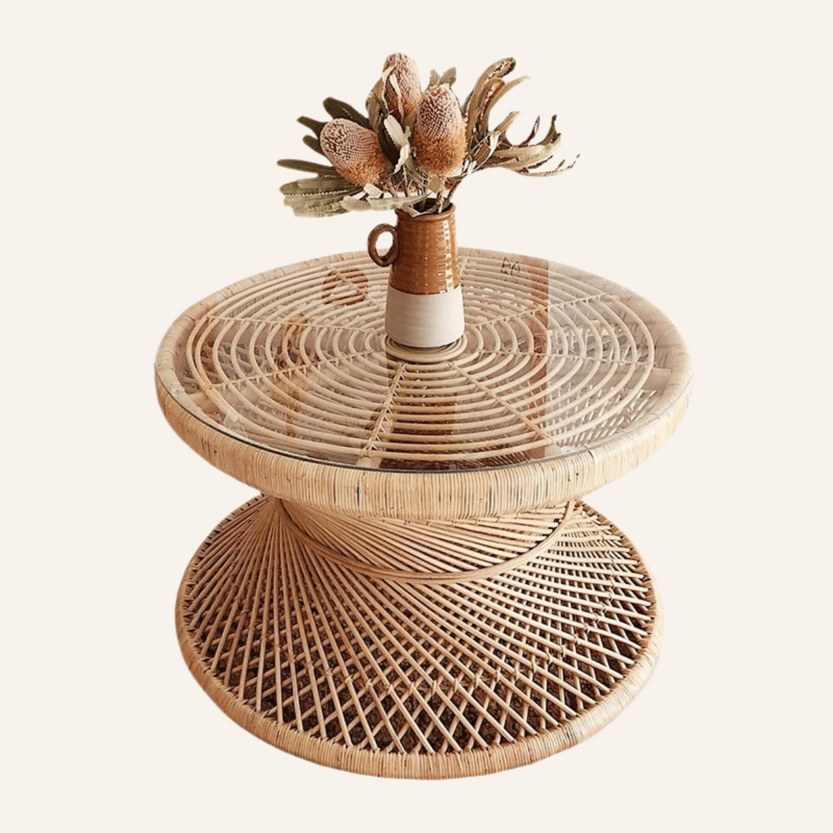 Diseño artístico y elegante con base cónica invertida. El trenzado diagonal crea una silueta llamativa que convierte esta pieza en el centro de atención. Ideal para interiores bohemios o tropicales.