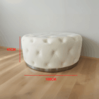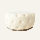 Puff redondo tapizado en capitoné blanco con botones forrados, estilo elegante y moderno. La base metálica cromada añade un contraste contemporáneo. Ideal para áreas lounge, salas de espera o espacios residenciales sofisticados.