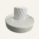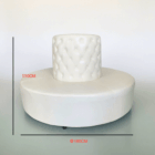 Sofá circular tapizado en vinil blanco con respaldo capitoné, ideal para lounges, centros de recepción o espacios elegantes con alto tráfico y estilo contemporáneo.