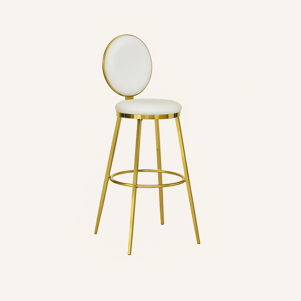 El Taburete De Bar Gold Glam combina lujo y comodidad con su diseño dorado y asiento ergonómico. Ideal para espacios de entretenimiento.
